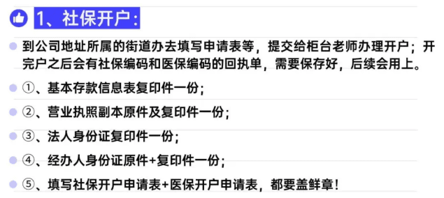5、社保開戶應(yīng)當(dāng)在新公司成立的三十日內(nèi)完成開戶,需要注意的是社保和醫(yī)保是兩個獨立系統(tǒng),需要分別辦理;